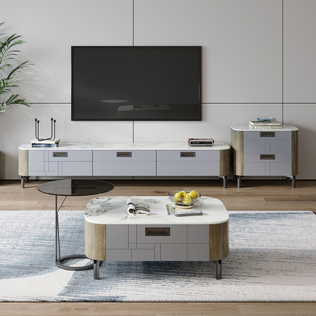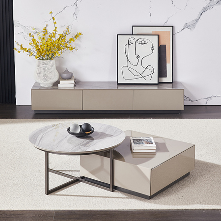 The countertop materials of the coffee table include high-strength tempered glass and ordinary glass, high-quality stone, and warm and natural wood; The frame materials include metal with simple shapes and solid wood that is sturdy and stable